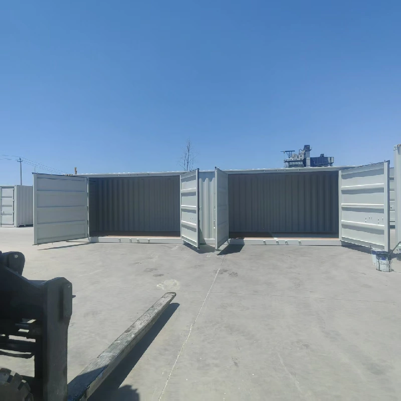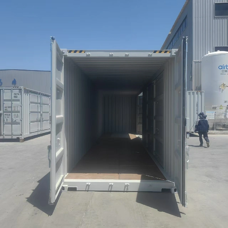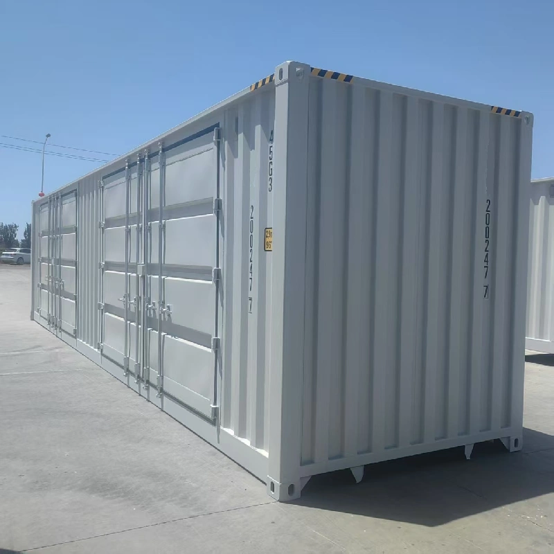 40 ft zabojnikov z visoko kocko z 2 stranskimi vrati je učinkovita logistična oprema, ki je posebej zasnovana za zadovoljevanje posebnih potreb po prevozu. Najpomembnejša značilnost tega vsebnika sta njegova 2 stranska vrata, pri čemer je širina odpiranja enega samega niza stranskih vrat dosegla približno 4 - 5,75 metra (različna po zasnovi). Ta zasnova močno poveča udobje nalaganja in raztovarjanja tovora, kar omogoča enostavno ravnanje z velikim, dodatno dolgim blagom, ki je obsežno, nepravilno oblikovano in ga je težko naložiti ali raztopiti skozi končna vrata navadnih zabojnikov. Na primer, velika mehanska oprema, gradbeni materiali, vozila itd. Se lahko gladko premikate v in iz zabojnika skozi stranska vrata.